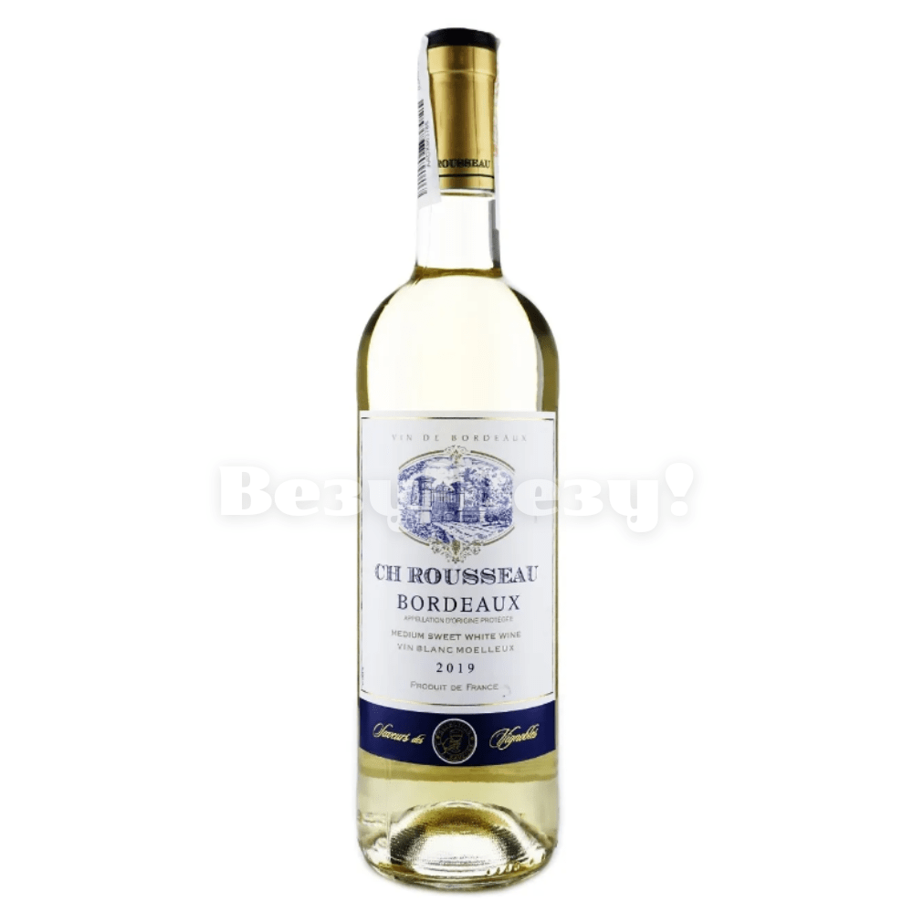 Вино CH Rousseau, Bordeaux; белое, полусладкое; 11%, 0,75л; подаётся к рыбе, морепродуктам, птице, десертам.