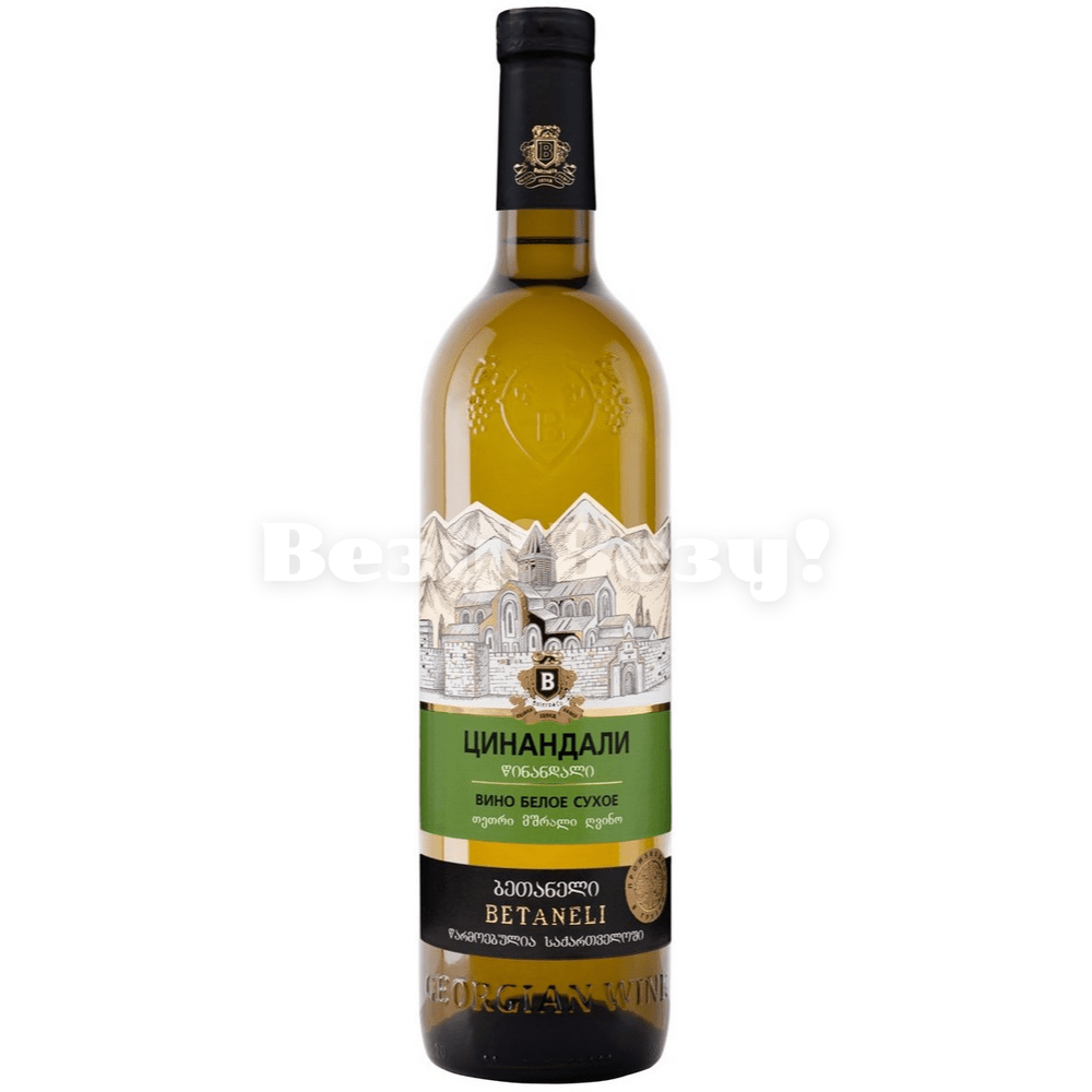 Вино Бетанели Цинандали; белое, сухое; объём 0,75л; крепость 11-12%; Грузия; Отлично сочетается с пастой, рыбой и овощными салатами;