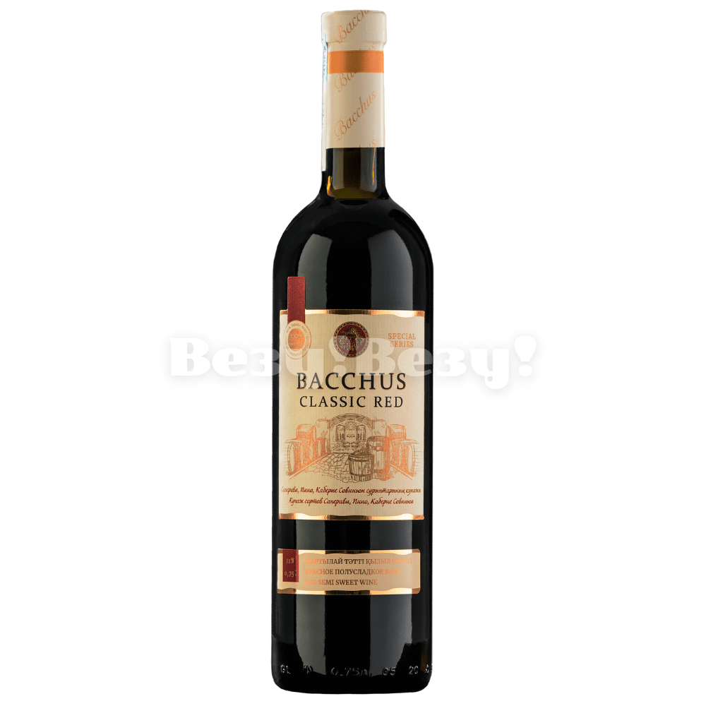 Откройте для себя изысканный вкус вина BACCHUS CLASSIC RED. Это столовое красное полусладкое вино очарует вас своим гармоничным сочетанием сладости и насыщенного аромата.