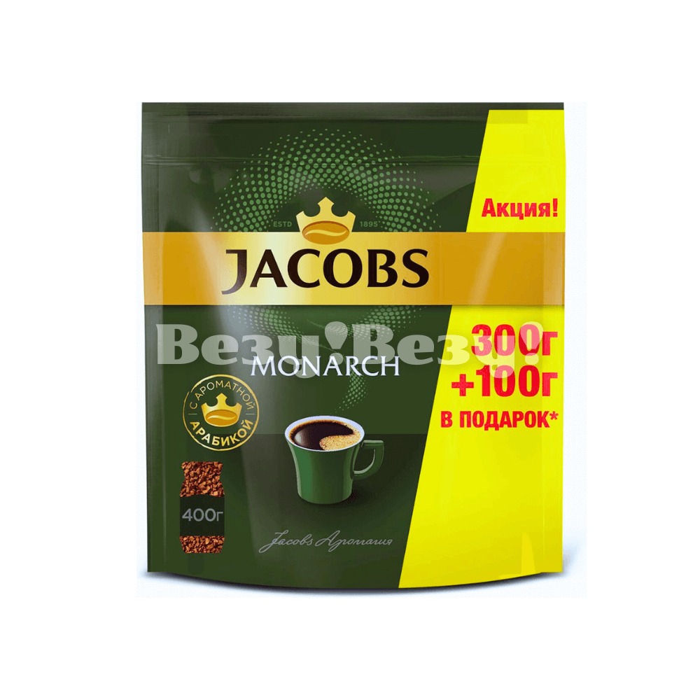 Кофе растворимый Jacobs Monarch ; Натуральный; сублимированный; 400гр; Дойпак; Изготовитель :ООО"Якобс ДАУ ЭГБЕРТС РУС"; Россия.
