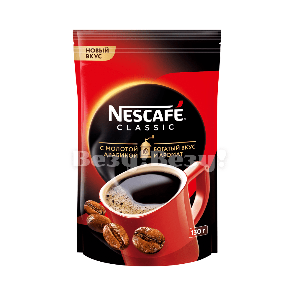 Кофе Nescafe classic 100% растворимый с добавлением жареного молотого кофе; объём 130г; Россия.