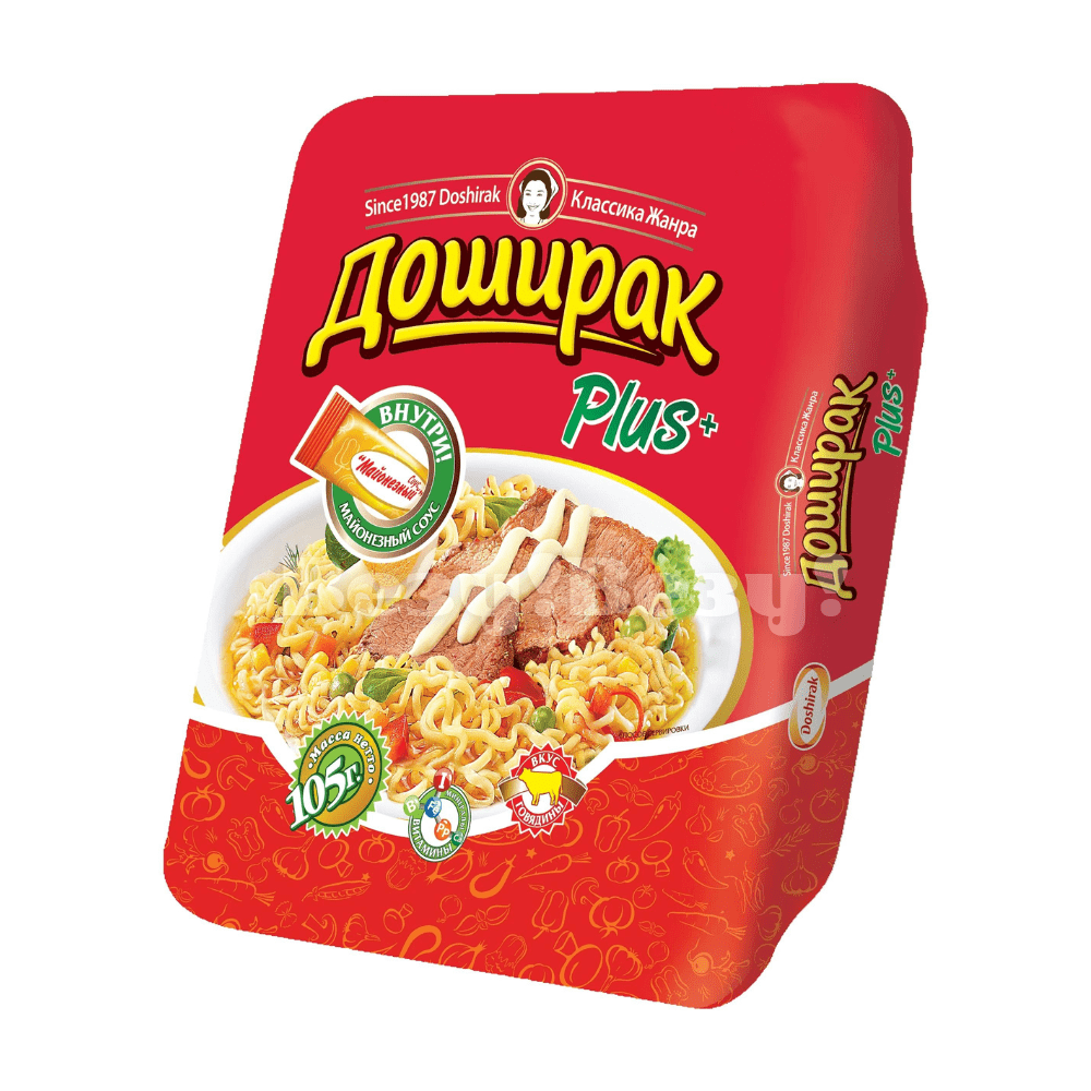 "Доширак Плюс" – это удивительно вкусная лапша с неповторимым ароматом говядины в удобной упаковке весом 105 грамм. Насыщенный вкус и превосходное качество ингредиентов делают этот продукт идеальным выбором для быстрого и вкусного приготовления ужина или перекуса. Погрузитесь в мир настоящего восточного вкуса с "Доширак Плюс" – вашим идеальным партнером в гастрономических приключениях.
