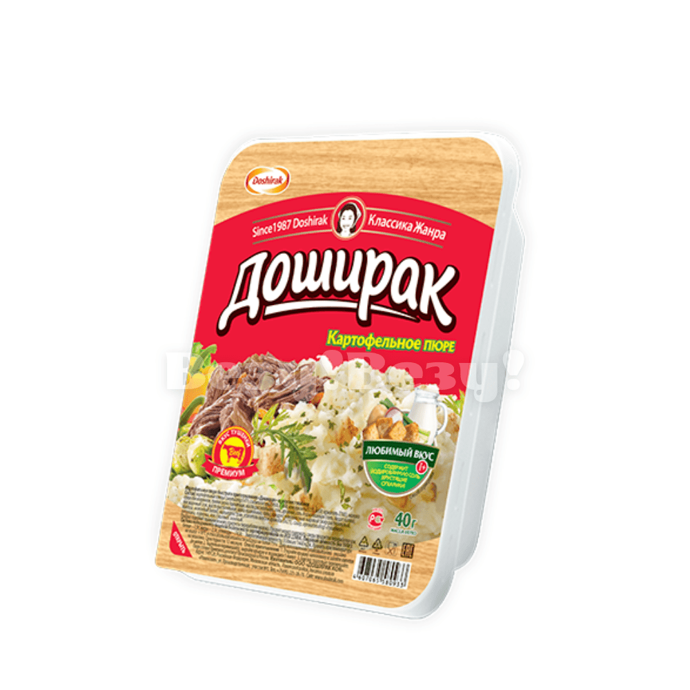 Доширак Картофельное пюре с тушёнкой - удобное и вкусное блюдо, готовое к употреблению всего за несколько минут. Сочетание нежного картофельного пюре и аппетитной тушёнки в удобной упаковке весом 40 грамм создаёт идеальный вариант для перекуса в любое время дня.