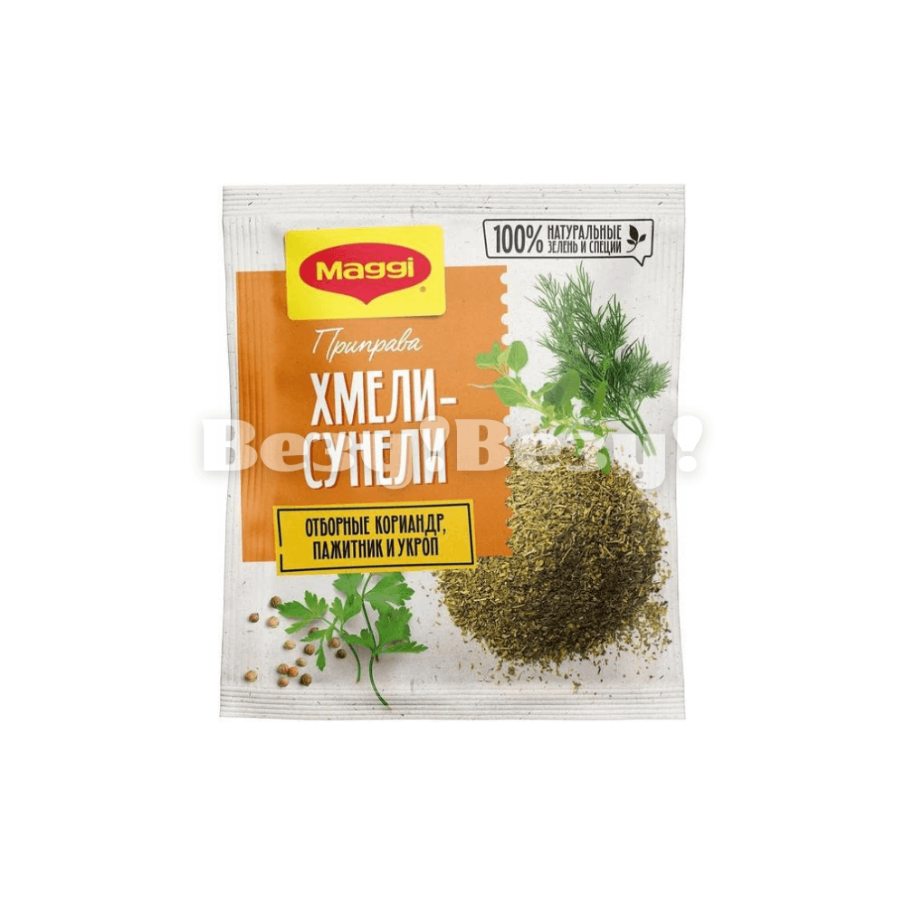 Специи молотые, травы и овощи сушеные (87 %) (кориандр, пажитник, укроп, лавровый лист, куркума, чеснок, петрушка, сельдерей, майоран, чабер, перец красный острый, кардамон), соль йодированная (соль, йодат калия), масло подсолнечное. Продукт может содержать глютен (из злаков), молоко.