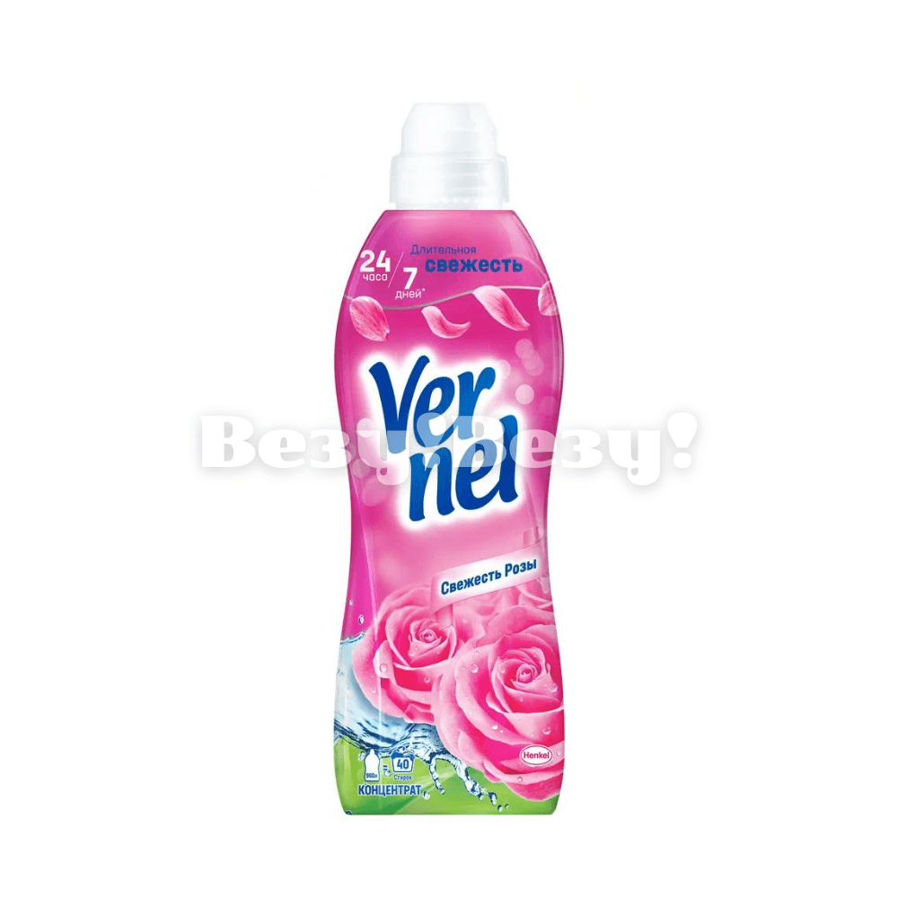 Кондиционер для белья VERNEL Свежесть розы, 960 мл – придаёт вашим вещам нежный аромат розы и обеспечивает длительную свежесть. Средство делает ткань мягкой, облегчает глажку и сохраняет цвет. Подходит для всех типов тканей.