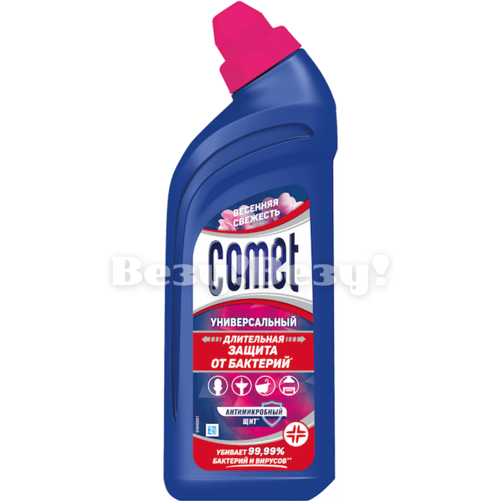 Универсальный чистящий гель COMET — эффективное средство для легкой быстрой уборки и дезинфекции поверхностей. Гель COMET идеально справляется с загрязнениями любой сложности.Универсальность в использовании: пригоден для плит (в том числе стеклокерамических), ванн, раковин, унитазов, кафеля, мытья полов.