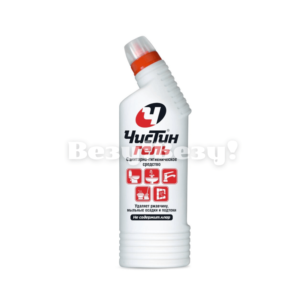 Средство для сантехники Чистин гель 750 г. Назначение. Санитарно-гигиеническое средство удаляет ржавчину, мочевой камень и известковый налет. Удаляет мыльные осадки и подтеки. Не содержит хлор. Способ применения. унитазы - нанести средство под ободок и распределить внутри унитаза, выдержать более 10 минут, почистить и смыть водой. при необходимости обработку повторить. Фаянсовые раковины - обработать средством и смыть водой. Полы (плитка, линолеум), сантехническая арматура, пластмасса - мыть раствором 2-3 колпачка средства на 1 л воды. Меры предосторожности. осторожно! Содержит щавелевую кислоту! При попадании в глаза и на кожу вызывает раздражение! При работе рекомендуется использовать щетку или резиновые перчатки. При попадании на кожу промыть большим количеством воды.