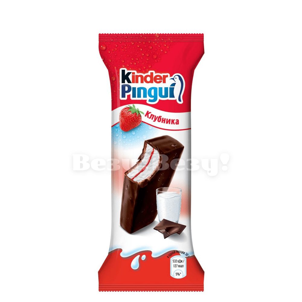 Порадуйте себя и своих детей вкусным перерывом с Kinder Pingui Клубника! Хрустящий темный шоколад, молочно-клубничная начинка и нежный бисквит. Сытный и питательный, он прекрасно подойдет для легкого перекуса.