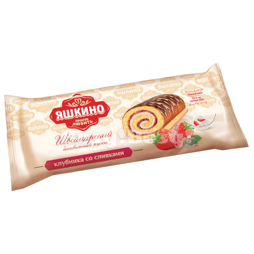 Рулет бисквитный Яшкино Клубничный со сливками 200г/14