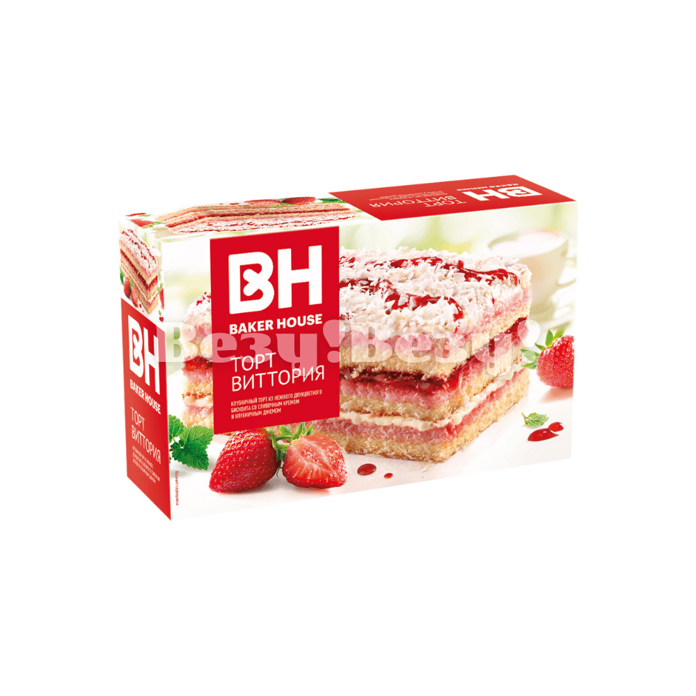 Торт бисквитный «Виттория» – изысканное сочетание двухцветного бисквита, ароматного клубничного джема и нежного сливочного крема. Лёгкая текстура и гармоничный вкус делают его идеальным угощением для любого случая.