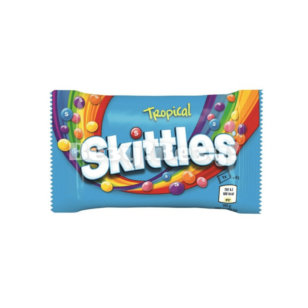 Драже Skittles Tropical – яркий микс тропических фруктовых вкусов в удобной упаковке 38 г. Наслаждайтесь сочными и насыщенными оттенками манго, ананаса, маракуйи и других экзотических фруктов.