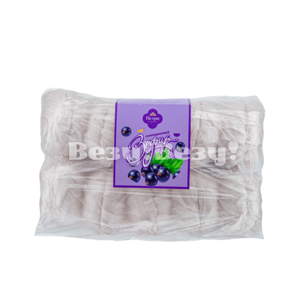 Состав: сахар, патока, фруктовая начинка (смородина, сахар), пектин, яичный альбумин, лактат натрия, молочная кислота, ароматизатор (“Смородина”), сорбиновая кислота