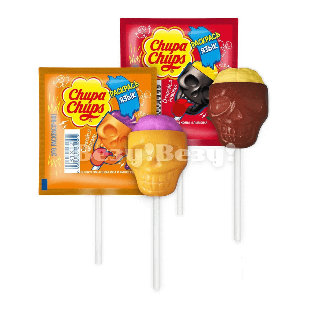 Карамель на палочке Chupa Chups "Раскрась язык" со вкусом апельсина и винограда