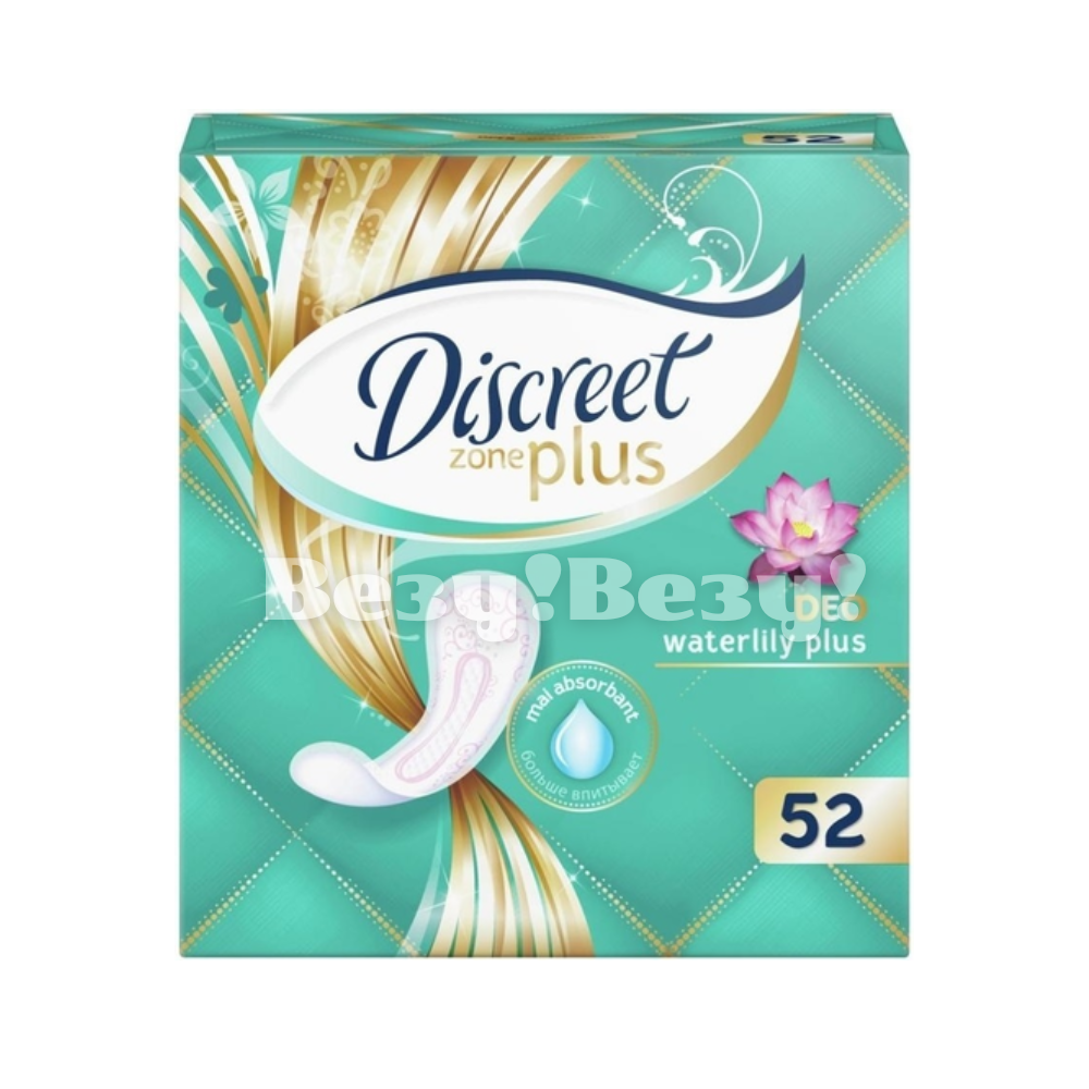 Невероятно тонкие ежедневные прокладки Discreet ZonePlus дарят защиту и при этом почти не чувствуются. Инновационная технология эффективно впитывает влагу и удерживает её, придавая ощущение чистоты и свежести в течение всего дня. Эти ежедневные прокладки с фирменным ароматом водной лилии подарят вам ощущение свежести и уверенности на целый день! Они впитывают ещё больше, чтобы вы чувствовали только свежесть (по сравнению с Discreet Multiform).