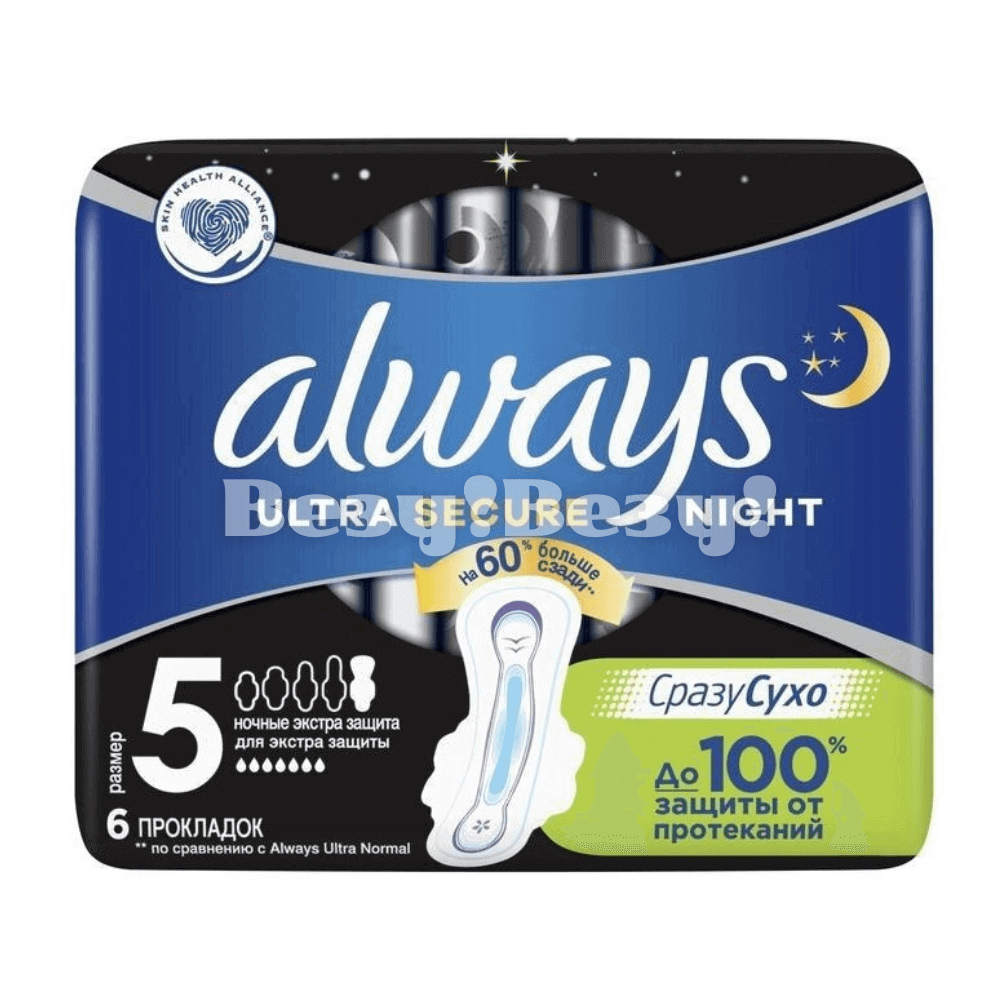 ALWAYS Ultra Женские гигиенические прокладки Night обеспечивают надежную защиту во время ночного сна. Эти прокладки имеют экстра защиту и специальное покрытие Deo Single, которое помогает предотвратить неприятные запахи. Они обладают 7-капельной абсорбцией, что делает их идеальным выбором для ночного использования. В упаковке содержится 6 штук прокладок. Это надежное решение для комфортной гигиенической защиты в ночное время.