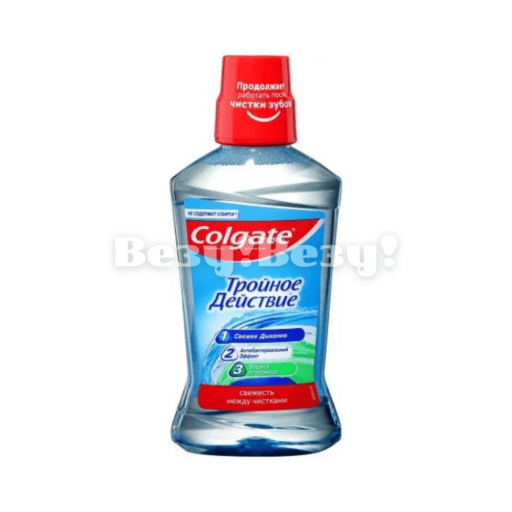 Ополаскиватель для полости рта Colgate "Тройное действие", 500 мл — обеспечивает комплексный уход: защищает от кариеса, освежает дыхание и укрепляет эмаль. Подходит для ежедневного использования.