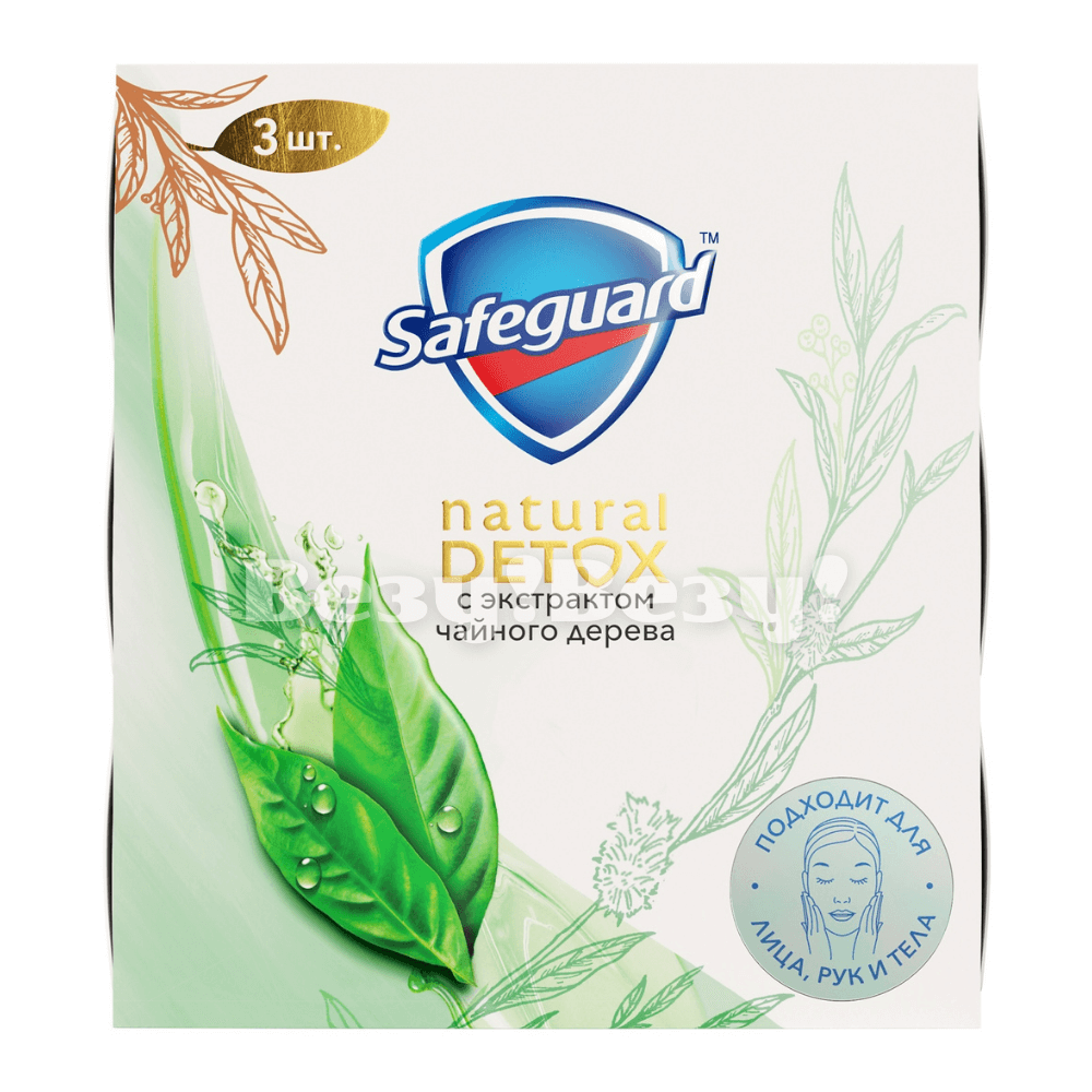SAFEGUARD Мыло туалетное Natural Detox С Экстракт Чайного дерева с антибактер эффектом 110гx3