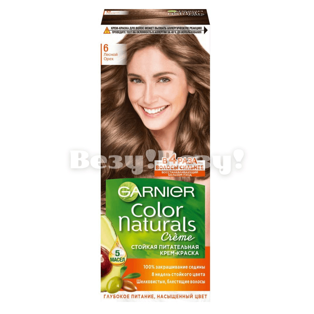 Описание: крем-краска Garnier Color Naturals, представленная в оттенке 6 «Лесной орех», насыщает волосы цветом до 8 недель и на 100% закрашивает седину. Активными ингредиентами формулы выступают пять масел натурального происхождения, и каждое из них обладает уникальными свойствами. Масло авокадо увлажняет, проникая в кутикулу волос. Масло клюквы обеспечивает защиту окрашенным волосам, которая так им необходима. Масло арганы борется со спутыванием и секущимися кончиками. Масло ши защищает от внешних факторов. Масло оливы отвечает за питание, а также дарит волосам глянцевый блеск.