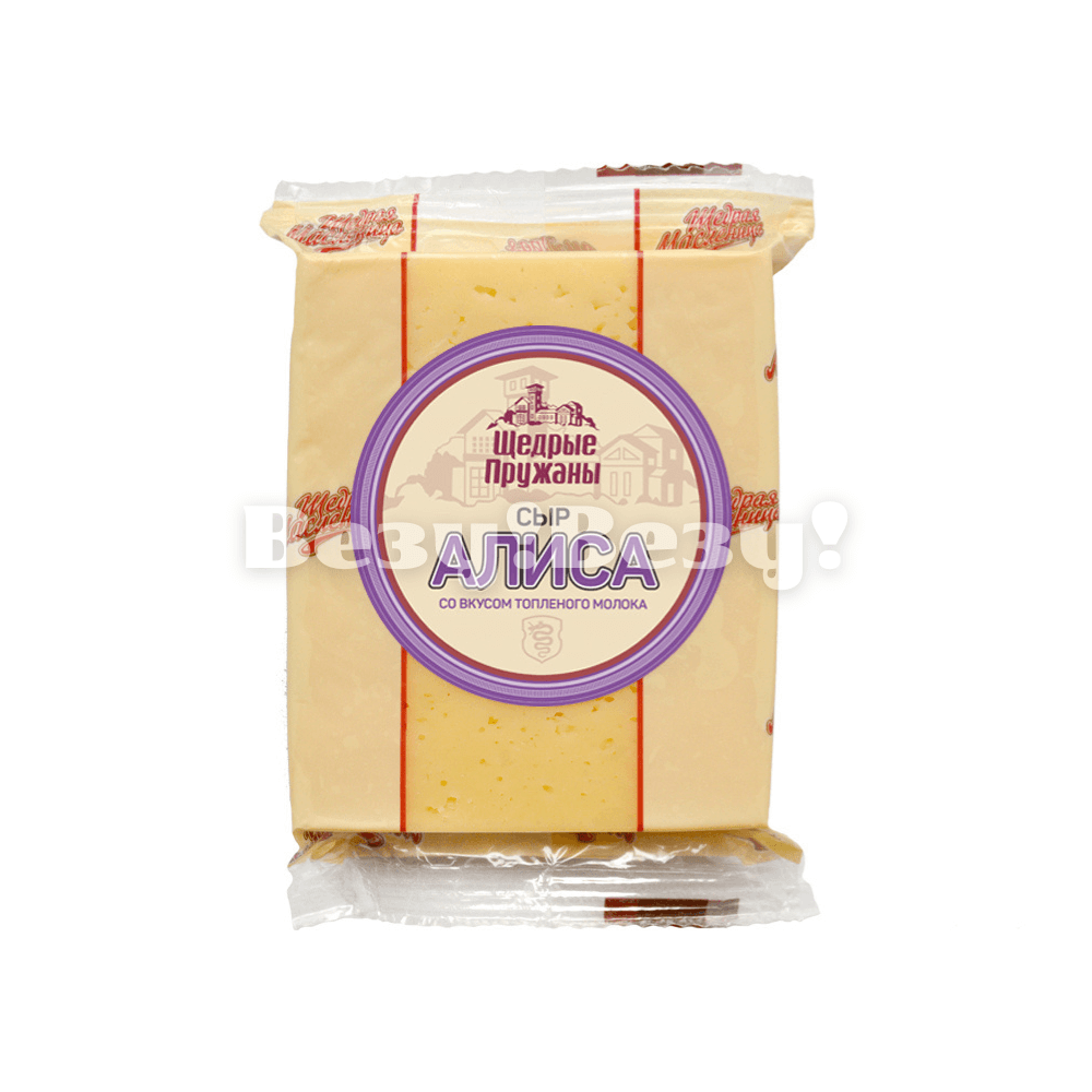 Сыр "Алиса" со вкусом топлёного молока; 50%; 200гр; Производитель: "Пружанский МЗС";Республика Беларусь.
