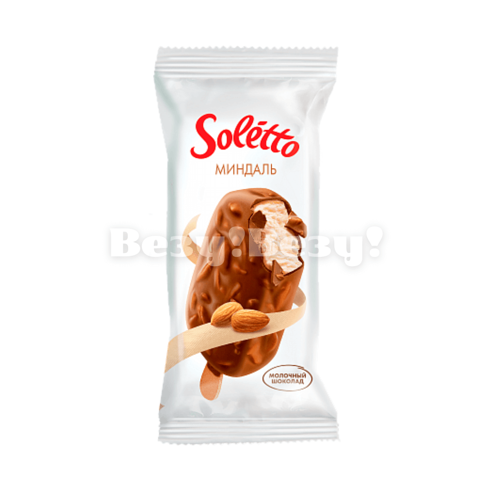 ''SOLETTO ШОКОЛАД МИНДАЛЬ'' Мороженое пломбир с ароматом ванили в молочной шоколадной глазури с миндалем эскимо