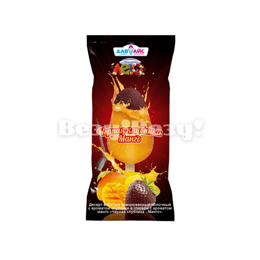 Фруктовый сорбет с ярким вкусом чёрной клубники и манго в хрустящей глазури. Лёгкое и освежающее лакомство. Вес 75 г.