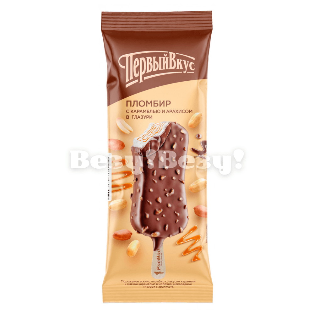 "Первый вкус" пломбир с карамелью и арахисом в глазури, 80г