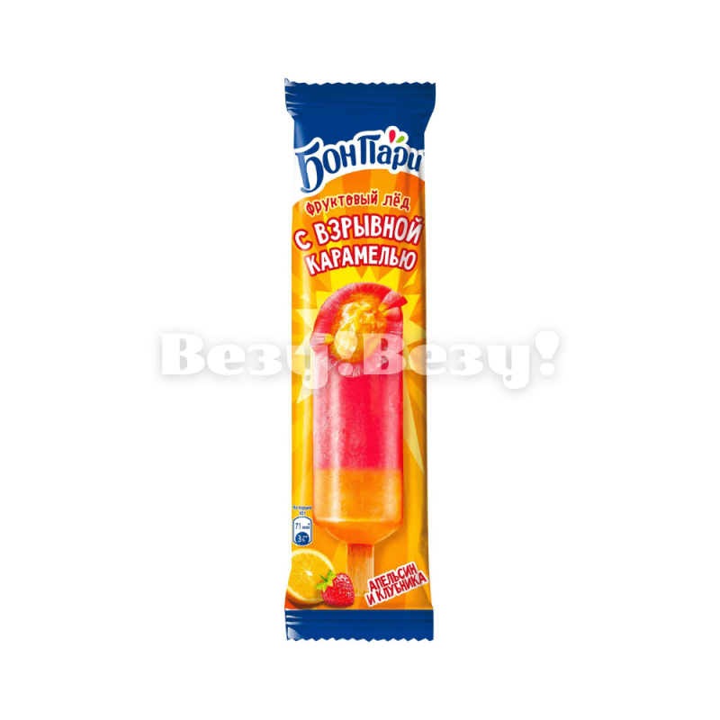 Фруктовый лед "Бон Пари" клубника и апельсин с взрывной карамелью 60 г