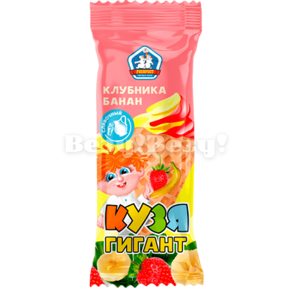 Рожок Кузя гигант банан клубника сливочный 110 гр