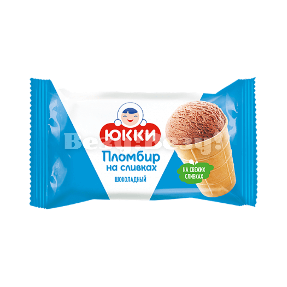 ''ЮККИ ПЛОМБИР НА СЛИВКАХ'' Мороженое пломбир шоколадный с ароматом ванили в вафельном стаканчике