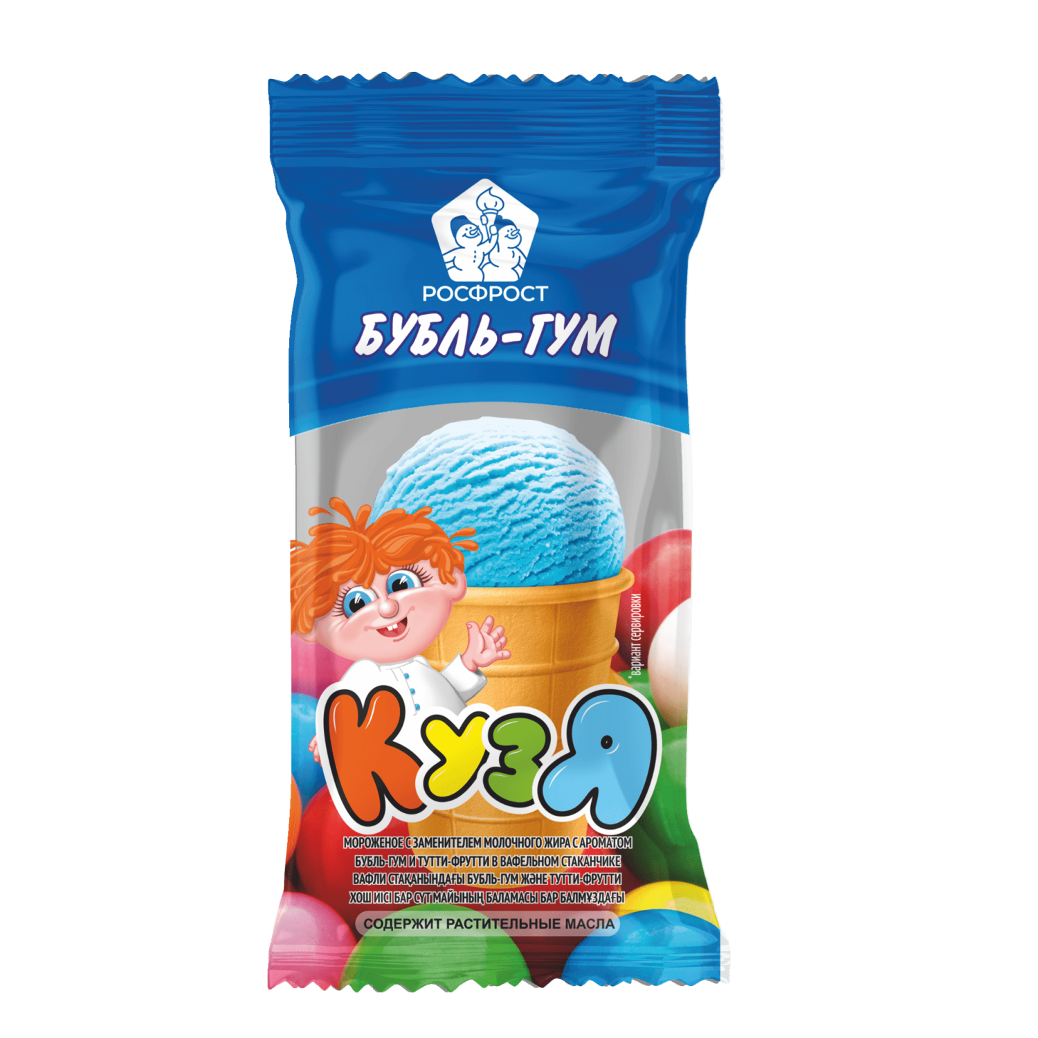 Мороженое Кузя Bubble Gum вафельный стаканчик; 70гр;