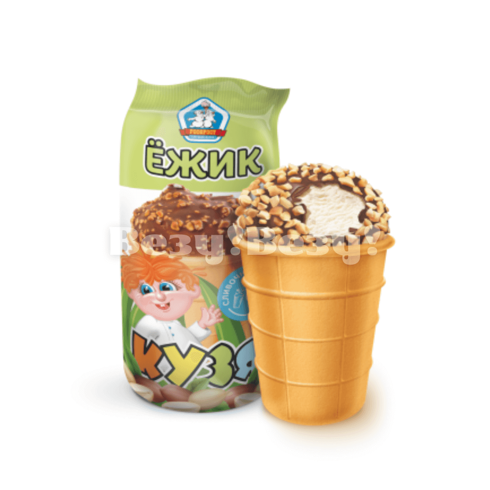 Вафельный стаканчик Кузя Ежик сливочный в шоколадной глазури с арахисом 80 гр