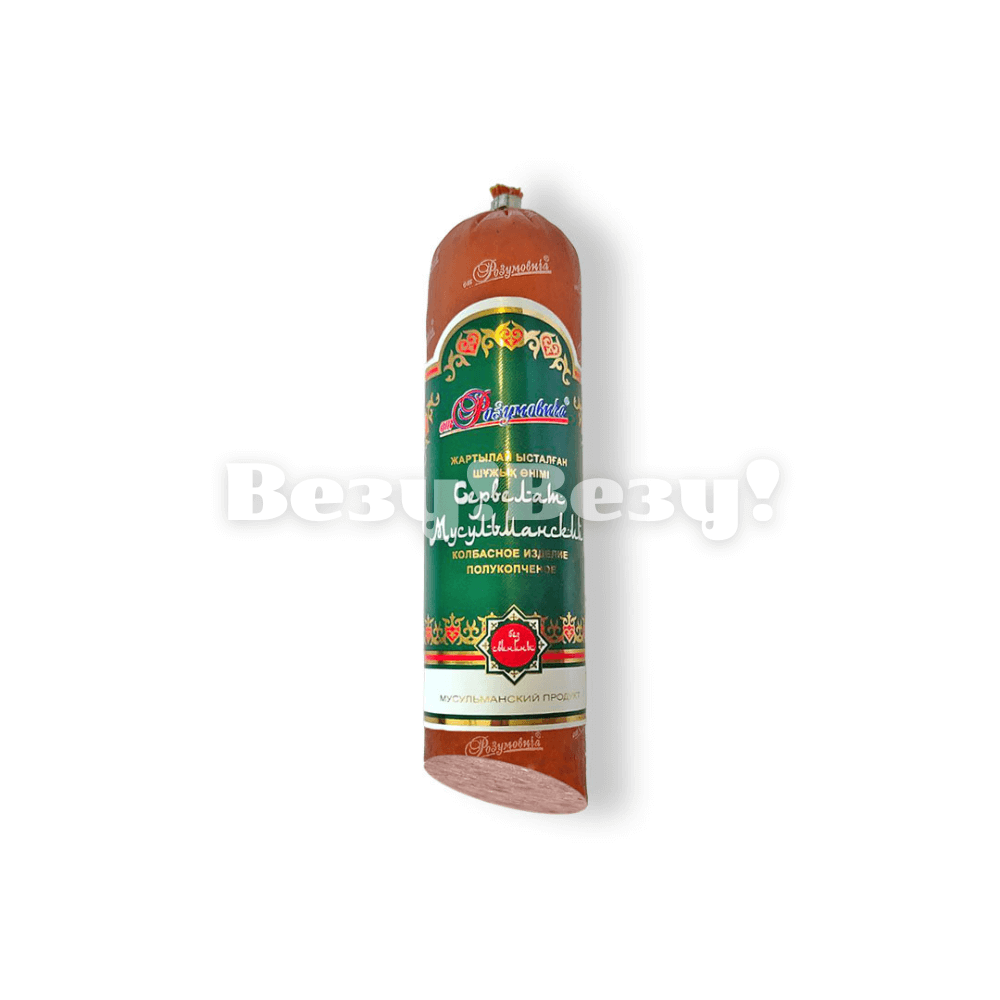 Сервелат "Мусульманский" изготовлен из отборной говяжьей вырезки с добавлением классических специй – душистого и белого перца. Обладает насыщенным вкусом и нежной текстурой. Продукт соответствует строгим стандартам качества и не содержит свинины.