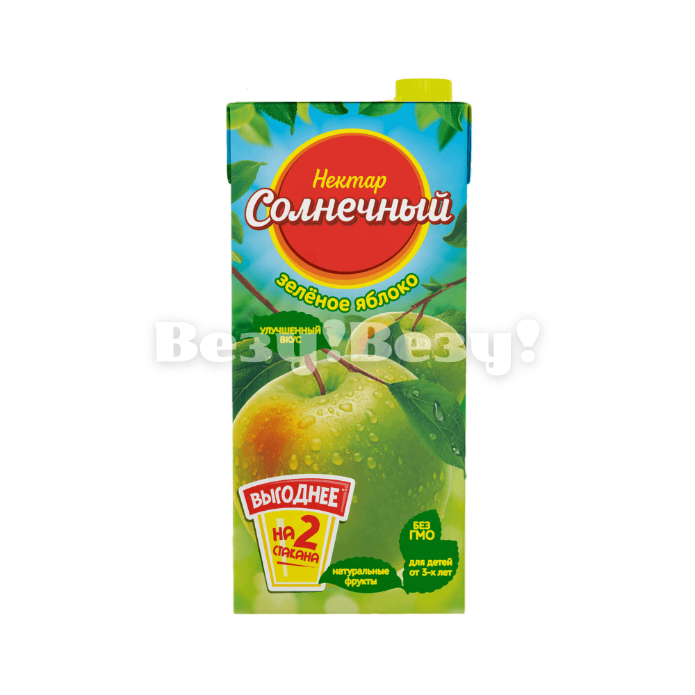 Нектар «Солнечный» со вкусом зелёного яблока, 1,9 л — освежающий напиток с ярким фруктовым вкусом и ароматом спелых зелёных яблок. Идеально подходит для утоления жажды и наслаждения натуральными нотками яблочного сока.
