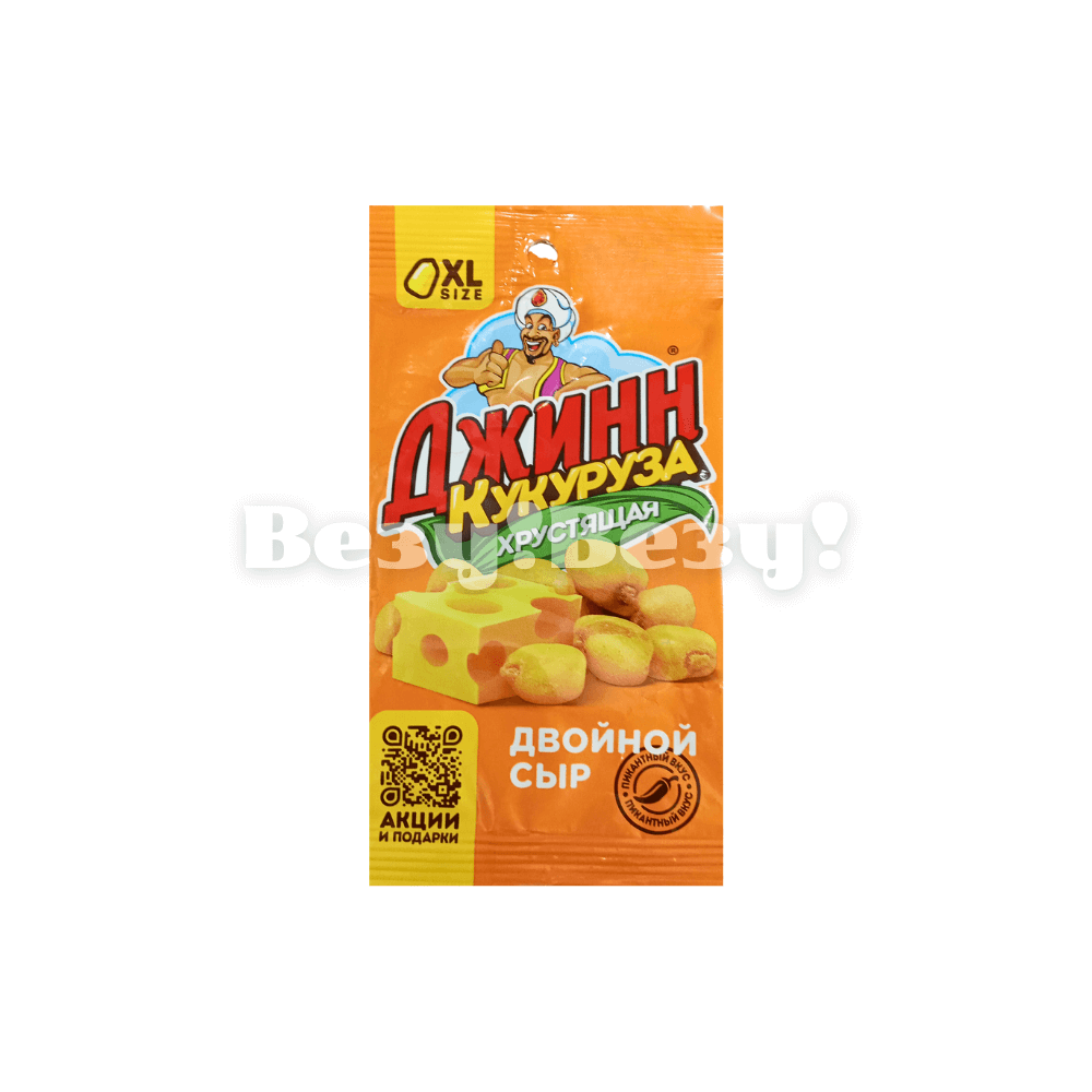 Кукуруза жареная Джинн, 35 г – хрустящий перекус с насыщенным вкусом двойного сыра и пикантного чили. Идеальный выбор для любителей ярких и смелых вкусов!