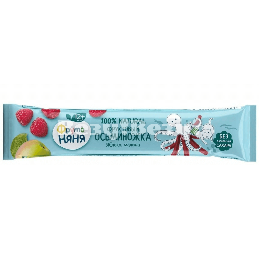 Фруктовый осьминожка от ФрутоНяня — это любимое малышами натуральное лакомство. В составе только фрукты и ягоды без добавления сахара, красителей и ароматизаторов. А благодаря необычной форме, с нашими фруктовыми осьминожками не только вкусно, но и интересно!