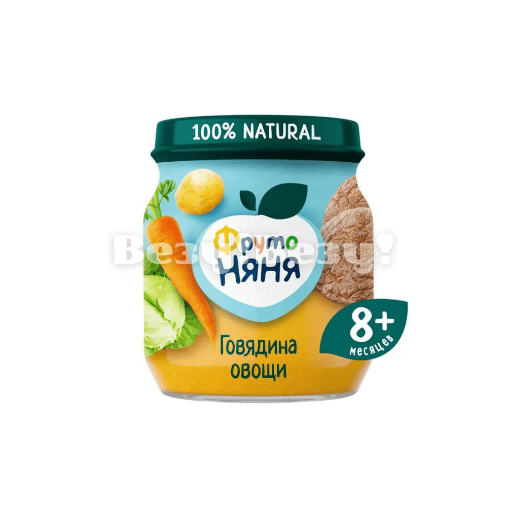 Пюре «ФрутоНяня» говядина с овощами, 100 г — вкусное и питательное блюдо для малышей от 8 месяцев. Натуральные ингредиенты, сбалансированный состав и нежная текстура идеально подходят для первого знакомства с мясом. Без консервантов, красителей и ГМО.