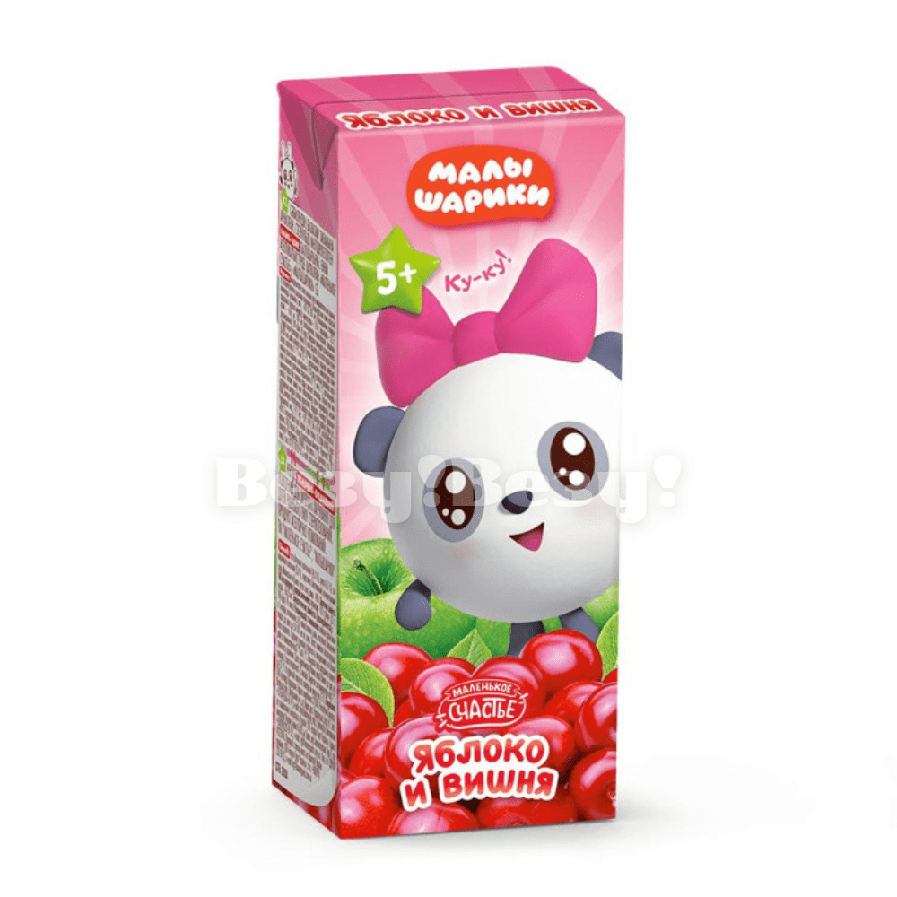 Маленькое счастье Нектар Яблоко-Вишня 200 мл Детский фруктовый сок «Маленькое счастье» со вкусом сладкого яблока с нотками кислой вишни понравится каждому малышу своим насыщенным вкусом. Продукт изготовлен по специальному рецепту, без добавления искусственных консервантов, красителей и ГМО. Оригинальное сочетание сладости с кислыми нотками спелой вишни насытит ребенка на долгое время. Высокое содержание клетчатки питает организм, дарит витамины и минералы, которые так важны в период активного роста. Состав:сок яблочный осветлённый, сахар, сок вишнёвый осветлённый, вода питьевая. Изготовлен из концентрированных соков.