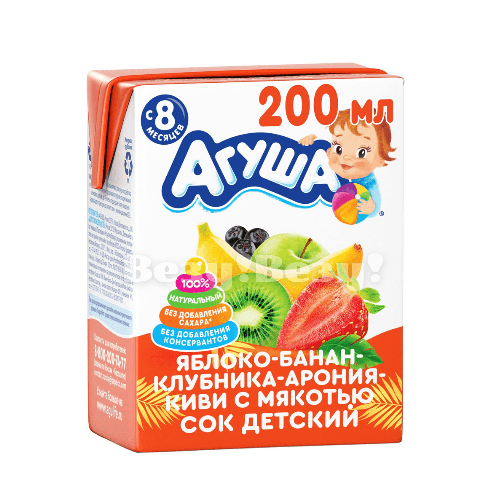 Сок детский Агуша 200мл яблоко банан клубника арония киви