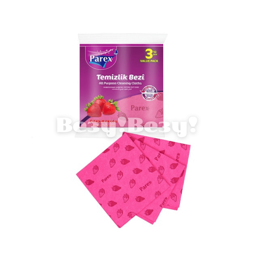 Безворсовые салфетки для уборки от турецкого бренда Parex с ароматом клубники – незаменимые помощники в каждом доме. Эти универсальные тряпочки для кухни предназначены для влажной и сухой уборки и идеально подходят для чистки различных поверхностей. Плотная структура салфетки обеспечивает эффективное удаление грязи, пыли и различных загрязнений. Они без труда справляются с мытьем окон, полов, стекол, зеркал, а также экранов мониторов, гаджетов и телевизоров.