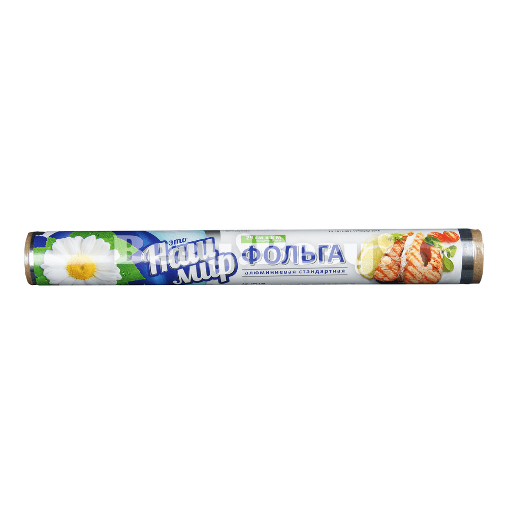 Фoльгa алюминиевая 29см*8м*8мкм, "Наш мир"