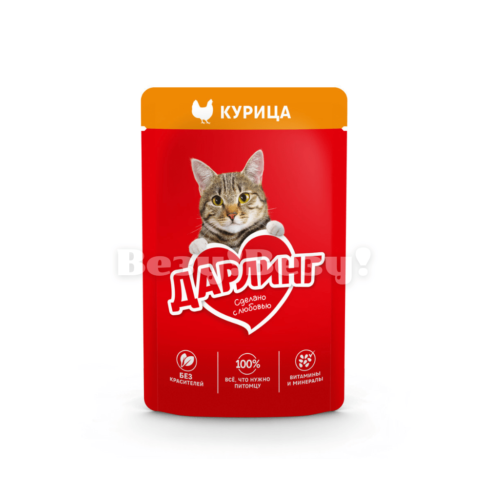 Дарлинг влажный корм для взрослых кошек с курицей в подливе, в паучах - 75 г