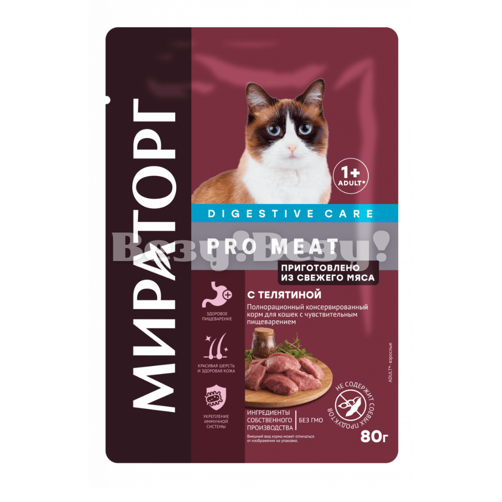 Корм с телятиной для кошек с чувствительным пищеварением 80 гр