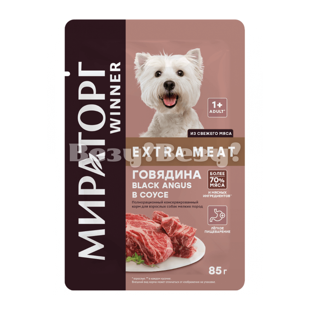 Extra Meat для взрослых собак мелких пород "Говядина Black Angus в соусе" 85 гр