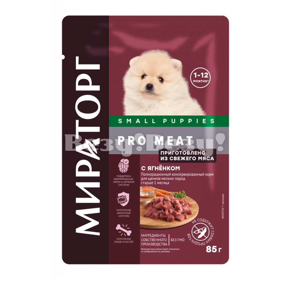 Корм консервированный полнорационный с ягненком для щенков мелких пород старше 1 месяца 0,085 кг