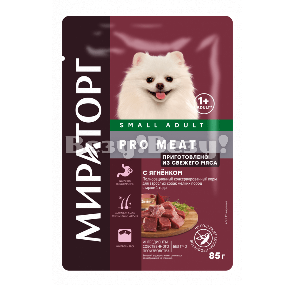 Корм консервированный полнорационный с ягненком для взрослых собак мелких пород старше 1 года 85 гр