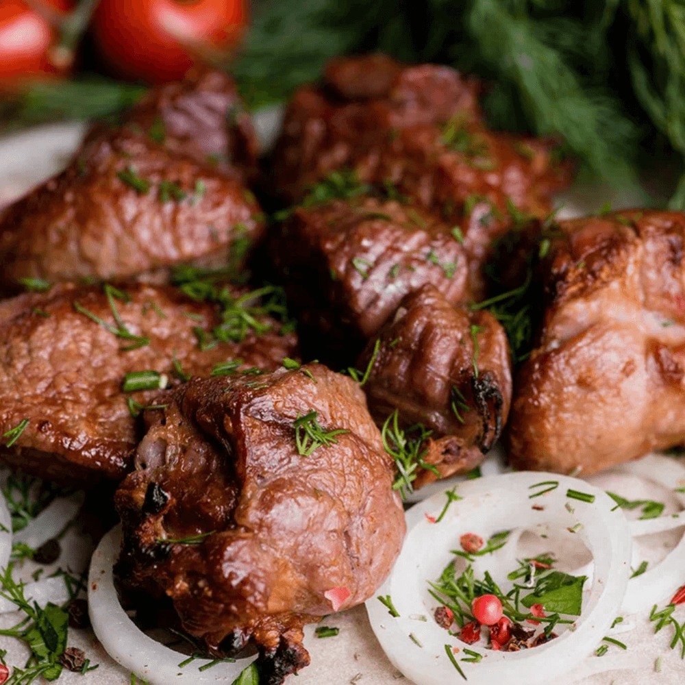 Сочный и ароматный шашлык из свинины, приготовленный из отборного мяса с пряными специями для насыщенного вкуса. Отлично подходит для сытного обеда или ужина.