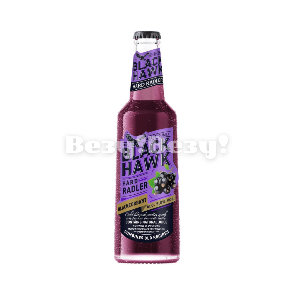 Пивной напиток «BLACK HAWK BLACKCURRANT FLAVOUR (ЧЕРНЫЙ ЯСТРЕБ СО ВКУСОМ ЧЕРНОЙ СМОРОДИНЫ)», 0,44 л