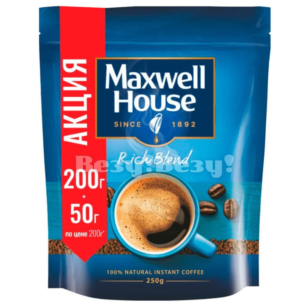 Кофе Maxwell House Rich Blend;натуральный; растворимый; сублимированный; 250гр; изготовитель ООО "Якобс Дау Эгбертс Рус"; Россия.