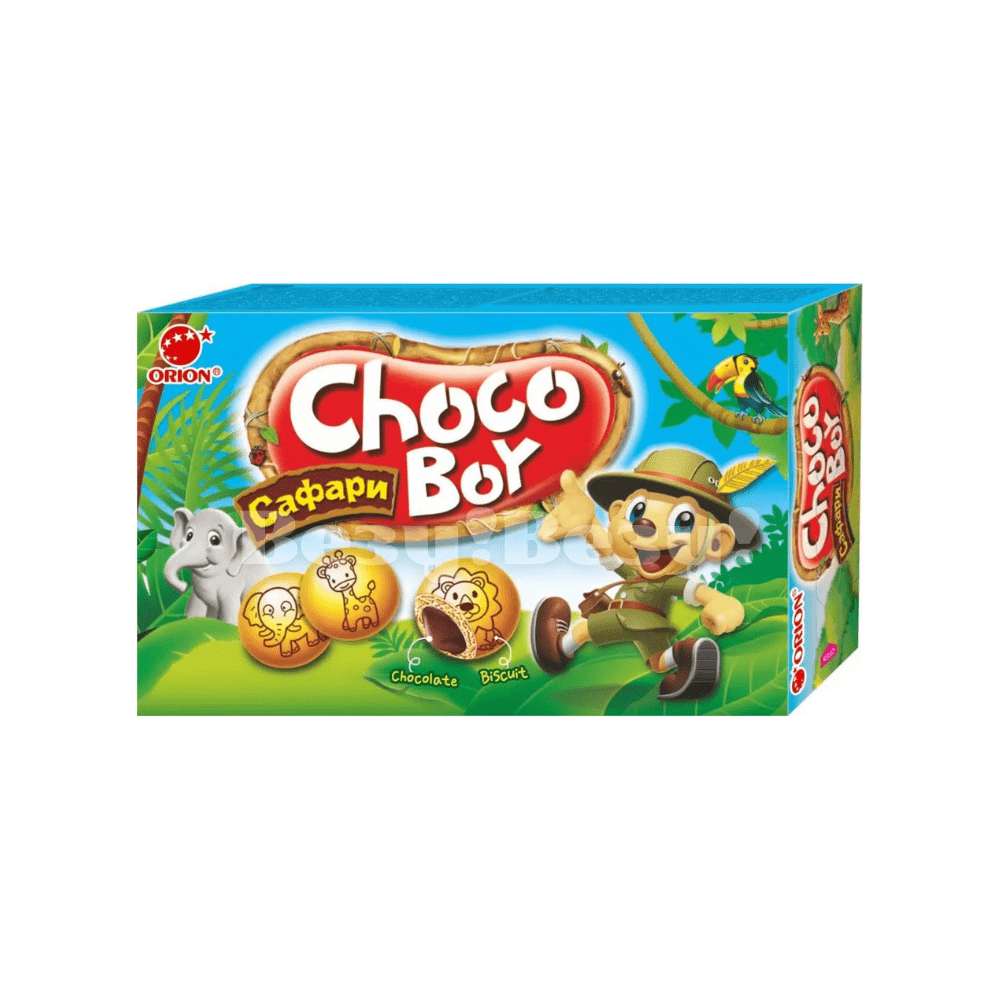Чоко Бой CHOCO-BOY Сафари — это легендарное печенье с изображением африканских животных. Хрустящий бисквит с банановой начинкой внутри. Оригинальное и вкусное лакомство! Шарики из хрустящего печенья с нежной банановой начинкой порадуют вас гармоничным вкусом, а благодаря веселым картинкам зверюшек, превратят чаепитие в игру.