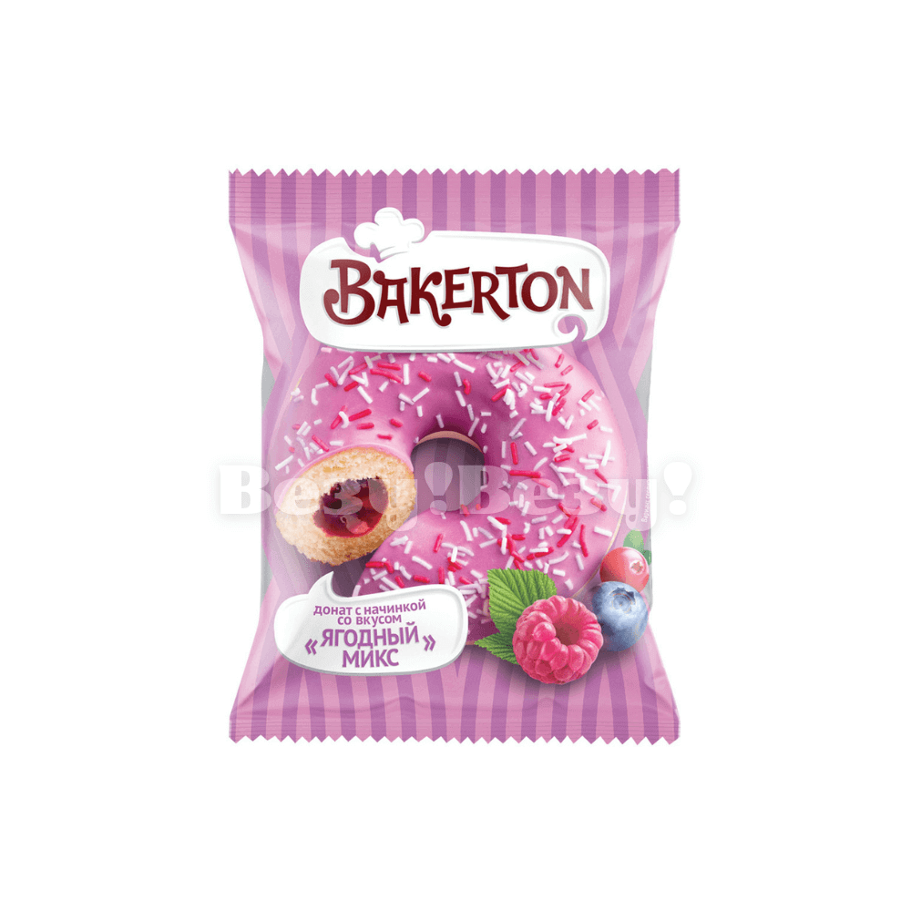 Донат глазированый "Ягодный микс" с ягодной начинкой; 70гр; Изготовитель ОАО "Хлебпром"; Россия;